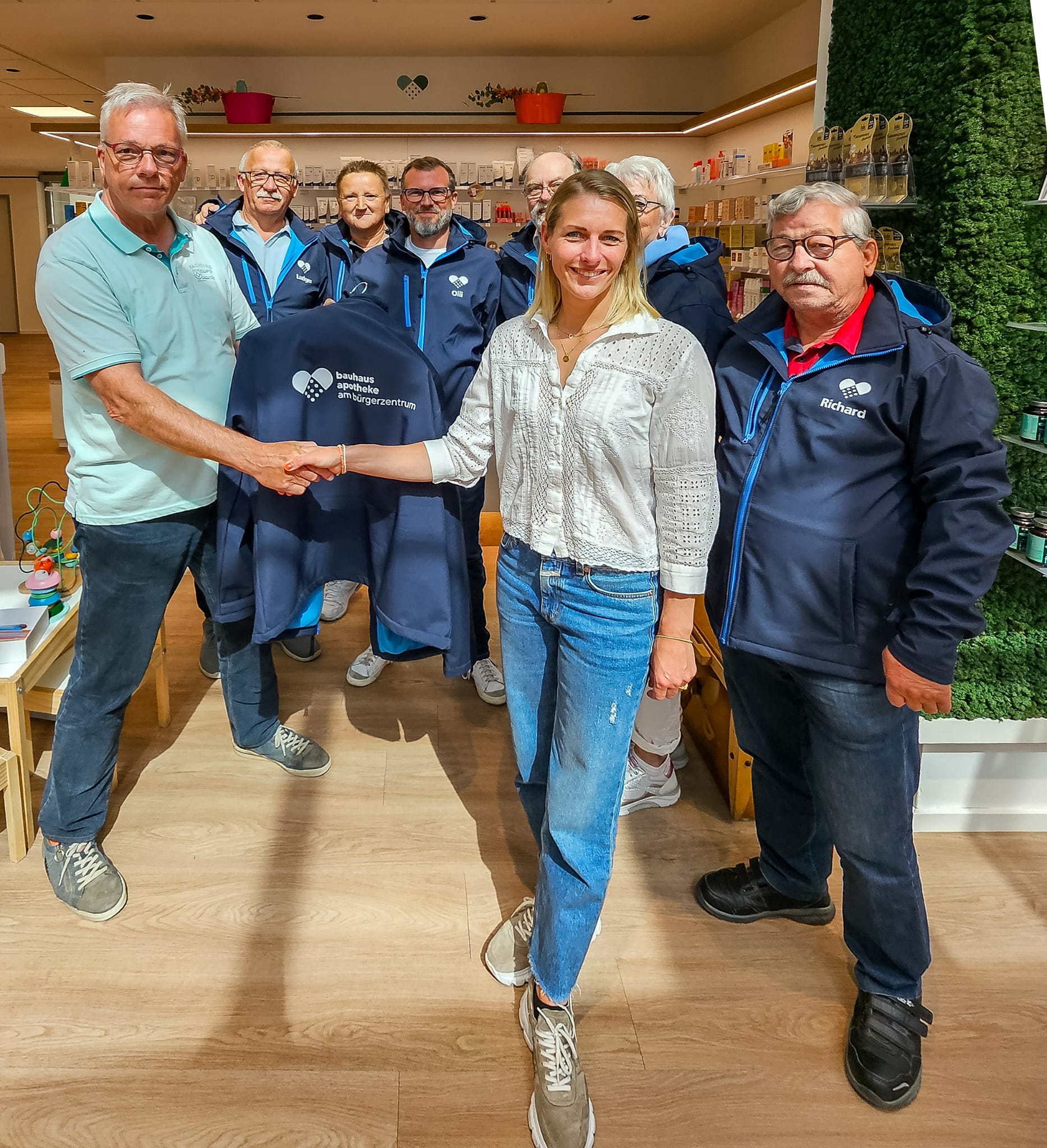 Passend zur neuen Saison konnten dann die Spieler*innen der Mannschaft mit Sportbekleidung in Form einer Softshelljacke ausgestattet werden. Die Freude war groß, als die Spieler*innen der BSG-Ligamannschaft ihre neue Spielkleidung in Empfang nehmen durften. Möglich wurde diese großzügige Ausstattung durch eine Spende der Bauhaus Apotheke Nordwalde, für die sich das gesamte Team herzlich bedankt.