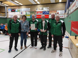 Der Siegerpokal wurde von Rita Münsterkötter an die siegreiche Mannschaft der BSG Nordwalde überreicht. Man ließ es sich nach den vielmaligen Versuchen, dieses Mal auch endlich den Pokal zu füllen und zu kosten. Alle Mannschaften zeigten sich begeistert, dass nach der langen Zeit der Zwangspause endlich wieder ein Turnier stattfinden konnte und bedankten sich herzlich beim Ausrichter BSG Nordwalde.