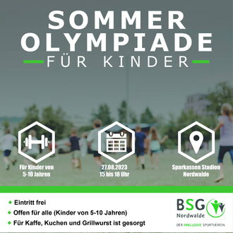 Am Sonntag den 27.08.2023 findet erstmals die offene Kindersommerolympiade der BSG Nordwalde e.V. auf dem Sportplatz der Denkerstiege statt.