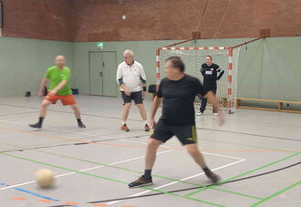 Es trafen sich 10 Männer, fast alles ehemalige Fußballer denen das traditionelle Fußball mittlerweile zu schnell geworden ist, die aber dennoch wieder regelmäßig etwas „kicken“ möchten in der KvG-Halle ein. Nach einer kurzen Vorstellungsrunde mit Kennenlernen der Spieler folgte eine kurze Aufwärmphase. Dann ging es los, im Spiel 5 gegen 5 wurde schnell klar, den Ball nur im Gehen (Walking) zu spielen, fiel den meisten am Anfang schwer, immerhin wollte jeder den Ball doch noch erreichen. Immer wieder hörte man die Anweisung „Nicht rennen“.